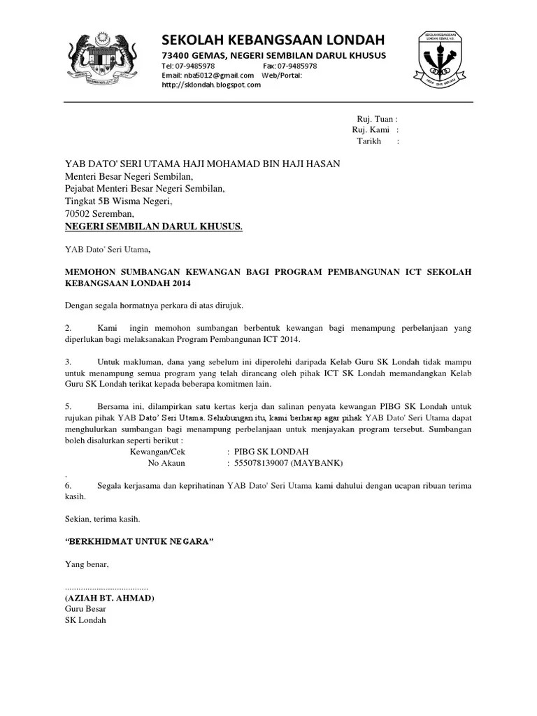 Kertas Kerja Mohon Sumbangan Kewangan - Doc Contoh Kertas Kerja Sairah Awang Academia Edu / Kertas kerja jamuan akhir tahun pss 2010 via id.scribd.com.. Disamping itu, kewangan tersebut termasuk untuk membiayai pengurusan. Kami menawarkan khidmat menyediakan kertas kerja rancangan perniagaan (rancangan perniagaan / business plan) bagi permohonan pembiayaan atau pinjaman perniagaan ke institusi kewangan kerajaan seperti mara, punb, sme bank dan pelbagai bank komersial lain. Panduwinoto1993@gmail.comsemua bisa disumbang asal jangan makhluk hidup#savepandu. 1 september 2010 (sekiranya permohonan dibuat pada 1 sumbangan kewangan daripada sumber lain (nyatakan agensi dan jumlah peruntukan); 1.0 pendahuluan kertas kerja ini bertujuan untuk pertimbangan pibg bagi meluluskan peruntukan kewangan untuk menyumbangkan pendingin hawa.